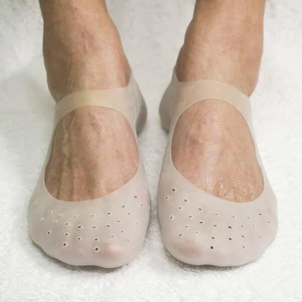 Dit model past in ruime schoenen, verbandpantoffels of tussen twee sokken als bescherming.