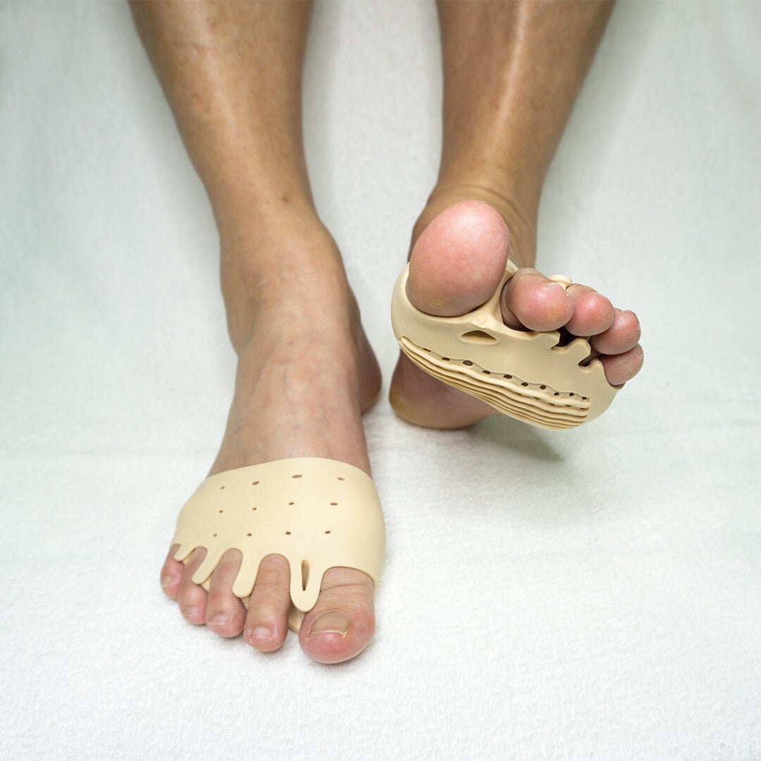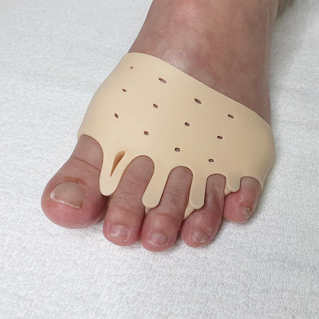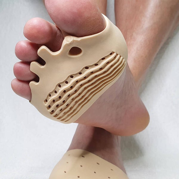 Het voorvoetkussen en teenspreider biedt bescherming en heeft een schokdempende werking bij het dragen van hakken waarbij de druk wordt gelegd op de voorvoet en tenen. Zorg altijd voor een voldoende ruime schoen.