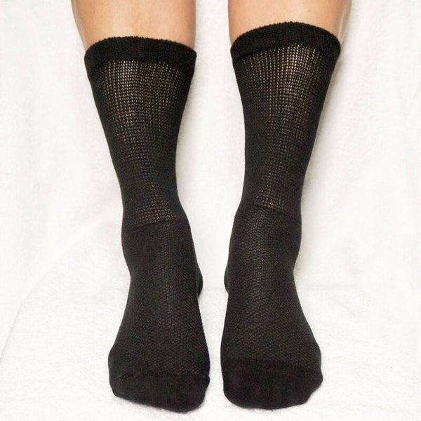 Pedisil diabetes sokken van 100% katoen zijn uitgebreid getest, hebben een preventieve werking en helpen voetcomplicaties bij diabetes te voorkomen. De sokken zijn speciaal voor diabetische voeten geweven uit duurzaam katoen. Vanaf de enkel zijn geen drukpunten naar boven toe, de sokken zijn anatomisch gevormd rondom de enkel en gewrichten en met platte naden gemaakt zodat deze niet voelbaar kunnen zijn. Ze zijn extra gevoerd, comfortabel en warm. Het garen van de diabetische sokken van Pedisil zorgt voor een betere doorbloeding en een hoger zuurstofniveau in de huid.